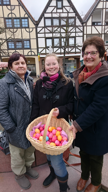 SPD-Ortsvereine Leimen und St.Ilgen Ostereieraktion der Frauen in der SPD Leimen-St.Ilgen-Gauangelloch Am Gründonnerstag war es wieder soweit: Einige Frauen der SPD Leimen trafen sich auf dem Georgi-Marktplatz, um während des Wochenmarkt wie schon in den letzten Jahren bunte Ostereier an die Bürgerinnen und Bürger zu verteilen.